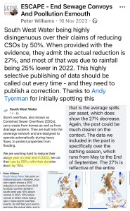 This time last year, South West Water trumpeted their ‘success’ in “reducing overflows by 50% and their duration by 75%”. We pointed out at that time that this statement was highly disingenuous, as any apparent ‘success’ was almost certainly caused by 2022 having 25% lower rainfall than average – and that they would need to take real action in order to bring sewage discharges down.